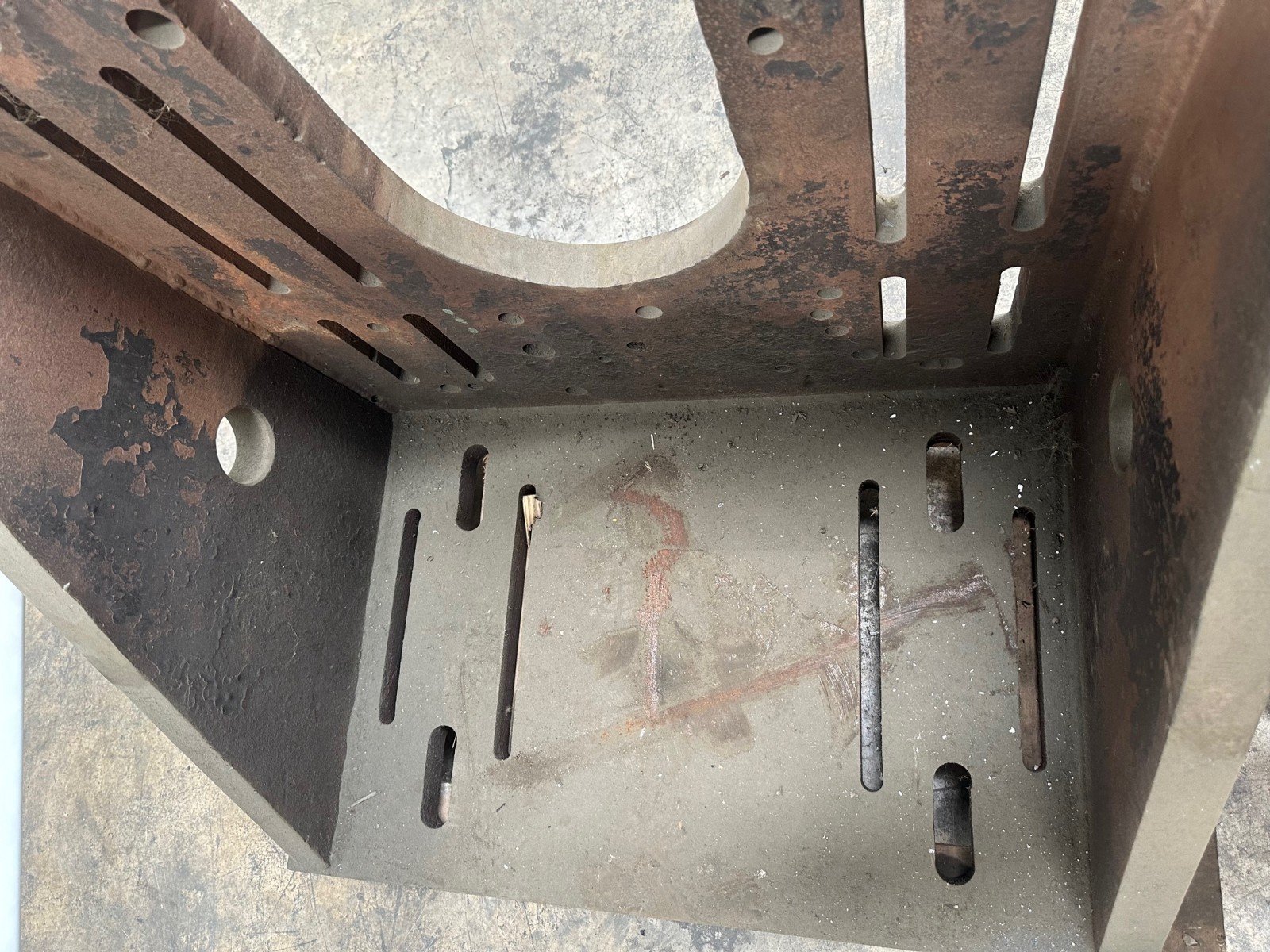 Slotted angle plate 900×600×900 mm, cast iron, 555 kg. Good condition.