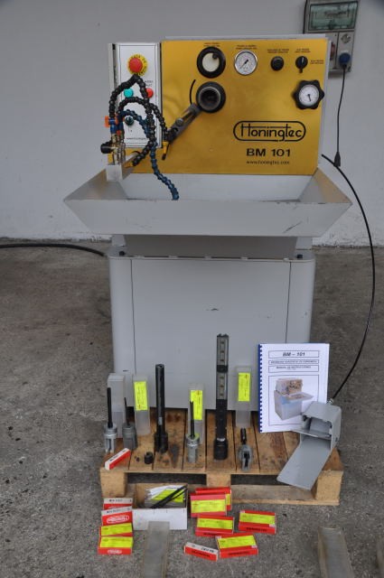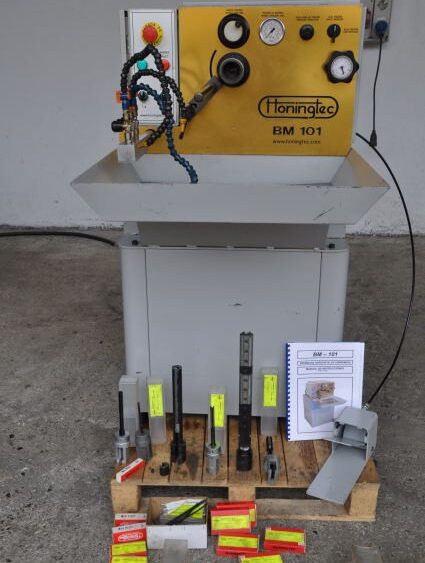 • Honingtec BM 101A honing–lapping machine, suitable for precision internal finishing.