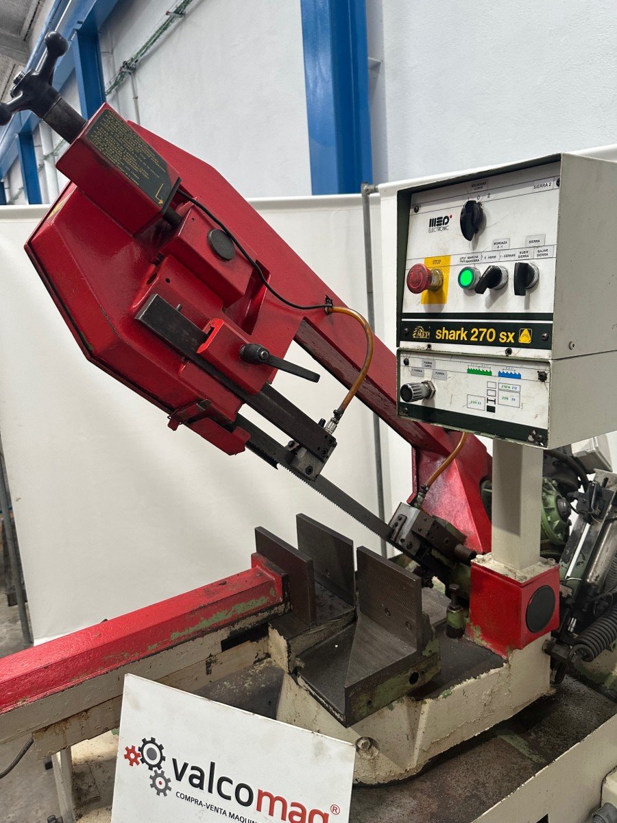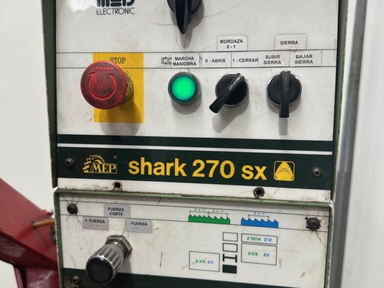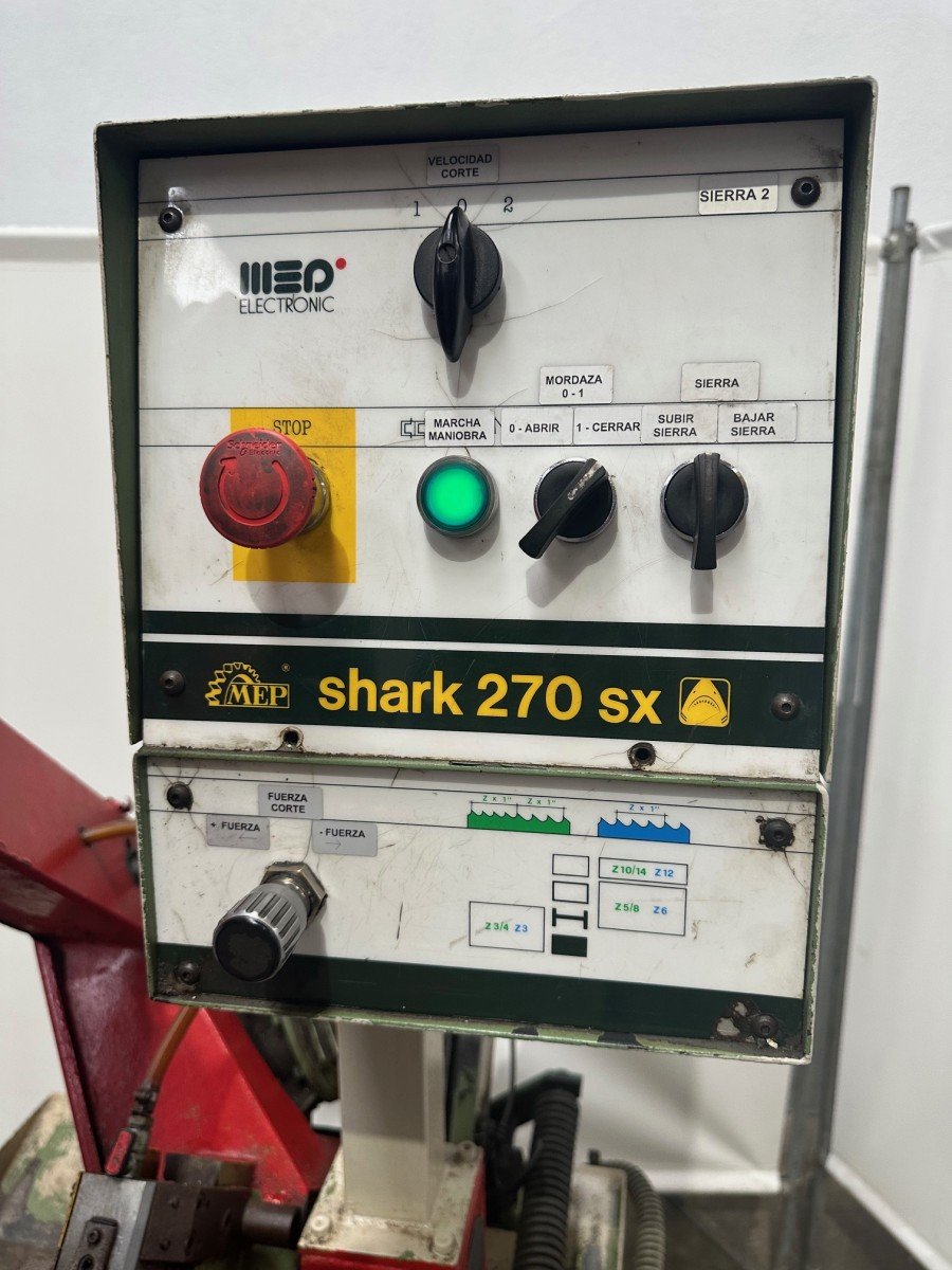 • MEP Shark 270 SX semi-automatic bandsaw, known for its robustness and cutting precision.