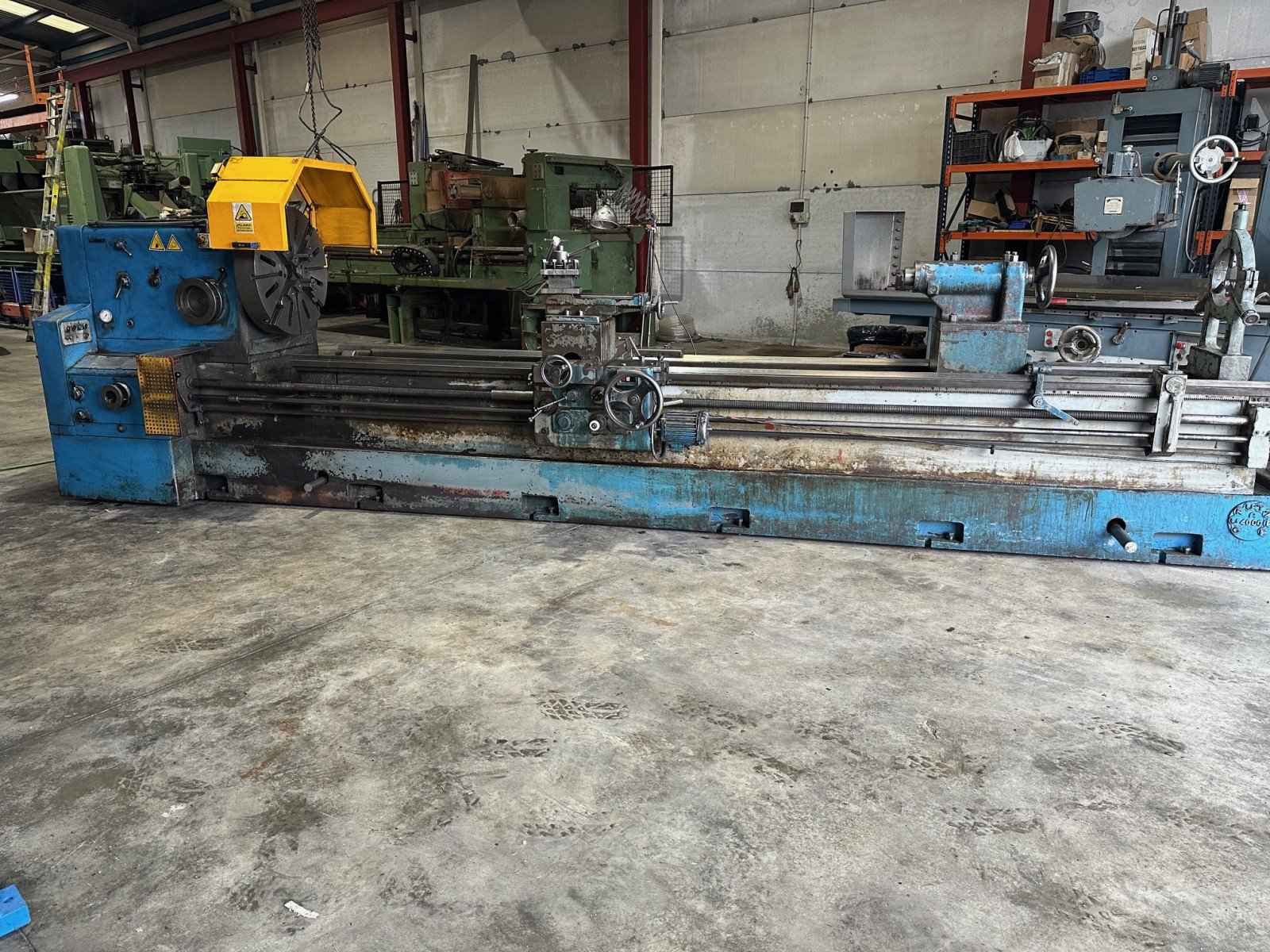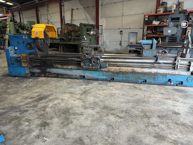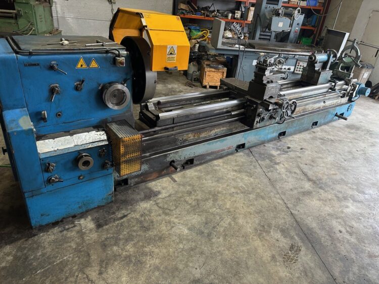 Gurutzpe Super A lathe, 6000 mm centers, 820 mm swing, powered carriage, three steadies, great for long workpieces.