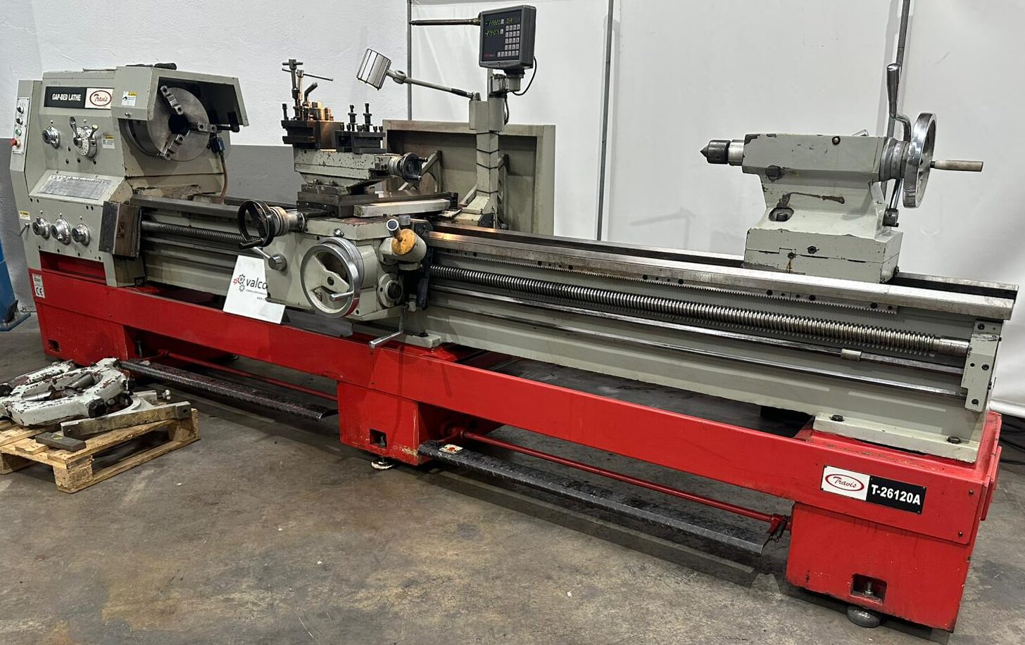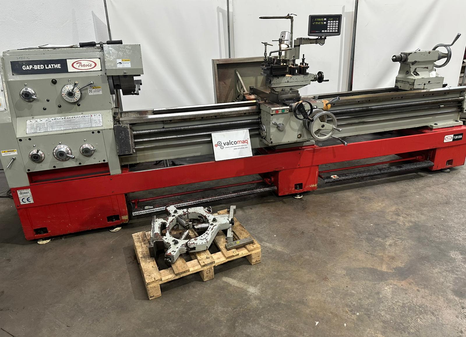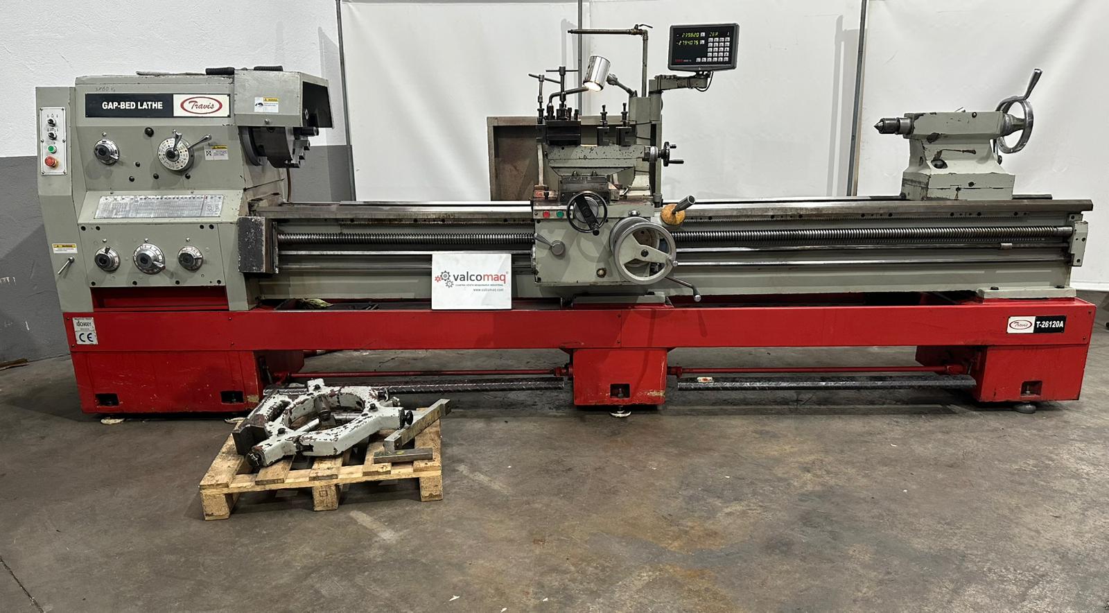 • Travis T 26120A/3000 engine lathe, suitable for heavy-duty and precision machining.