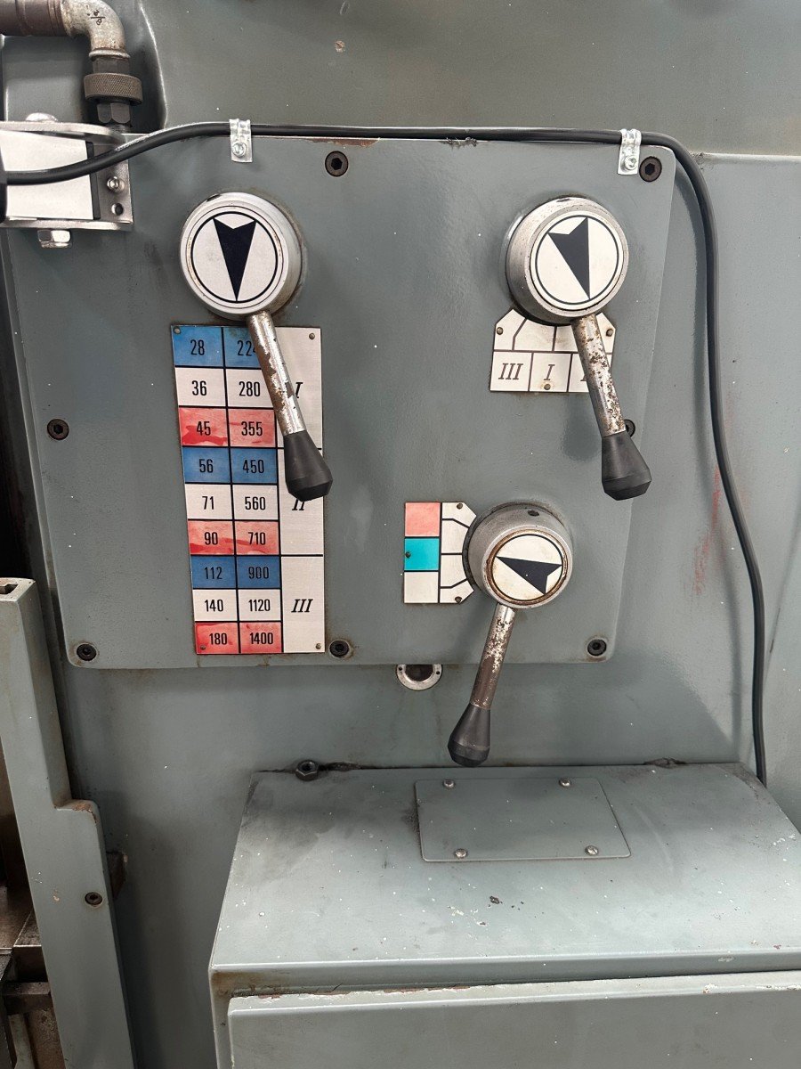 Lacfer C-R-2E-250 lathe, 1500 mm centers, 16 speeds (18–1600 rpm), 60 mm spindle bore, in very good condition.