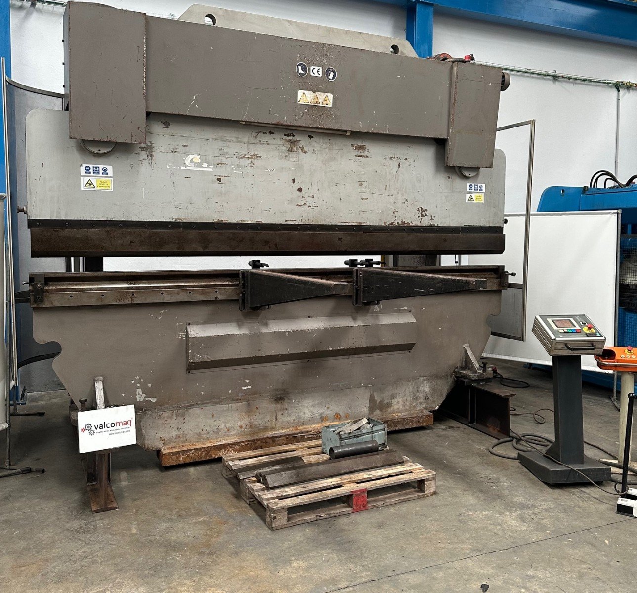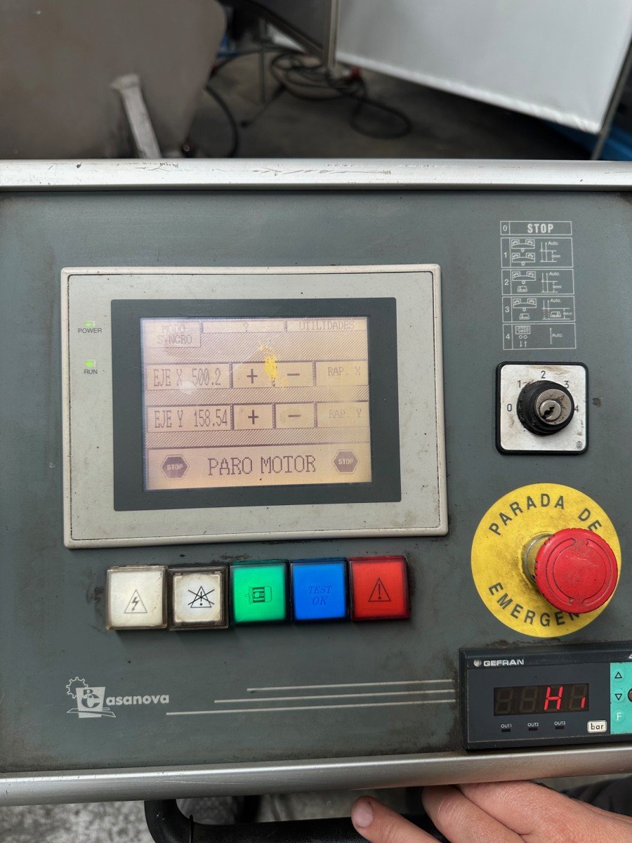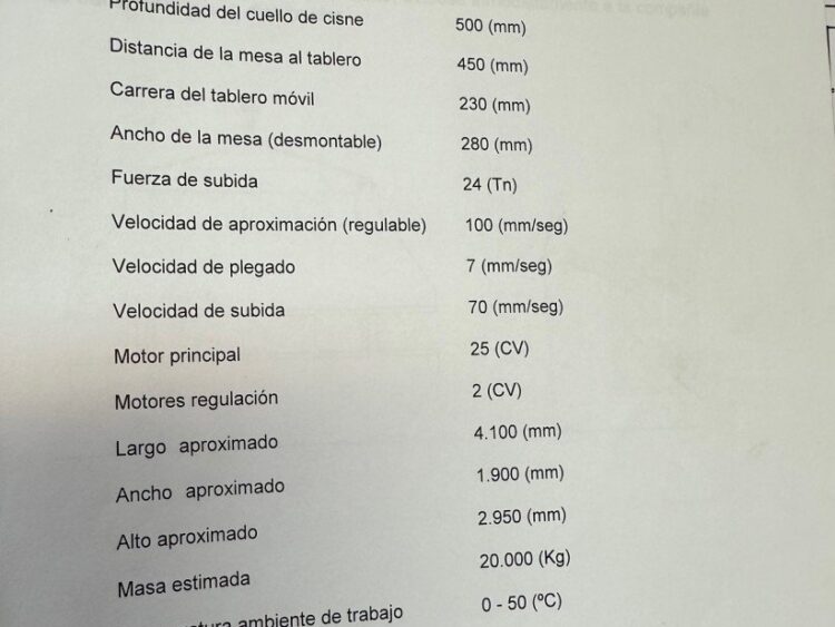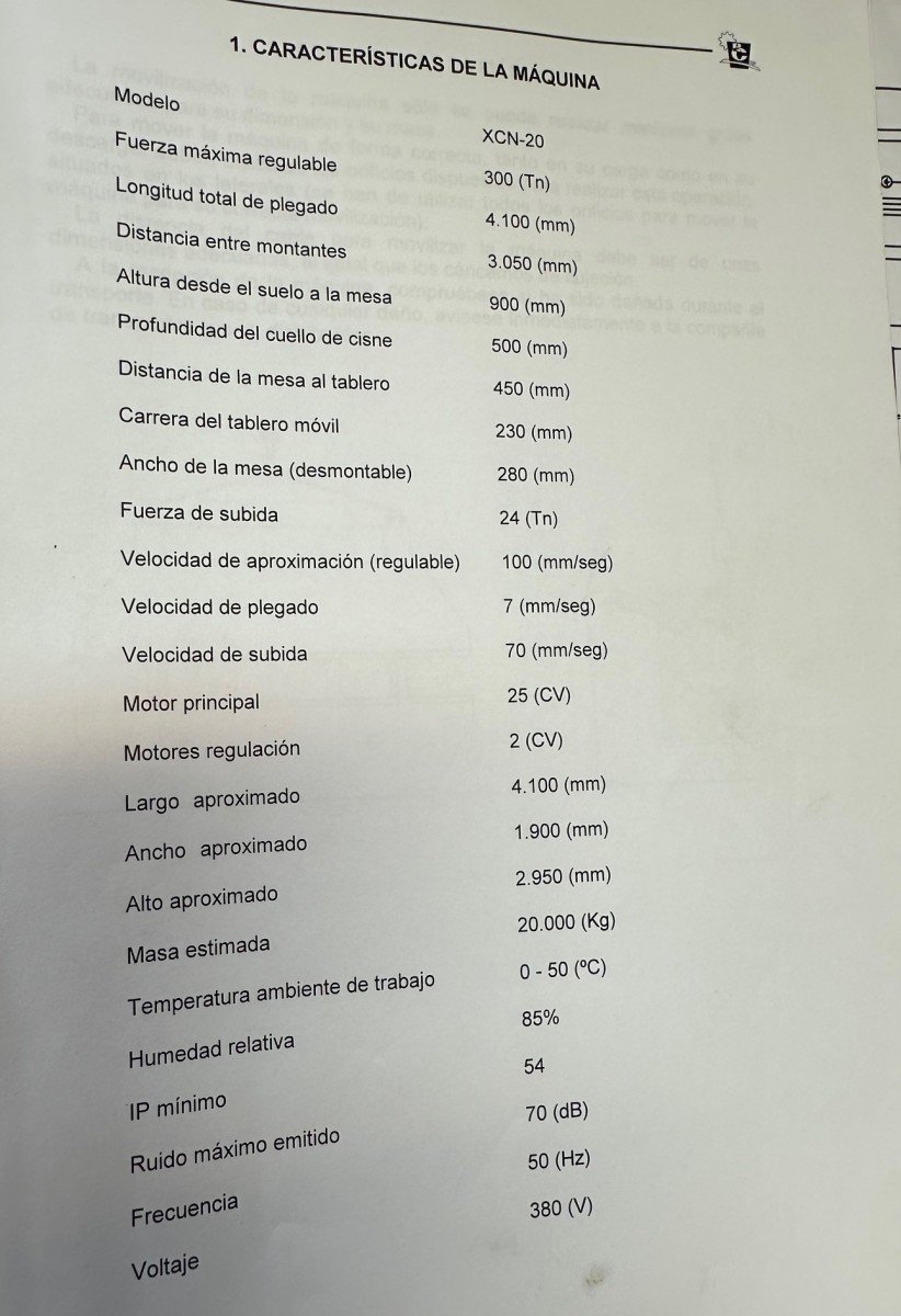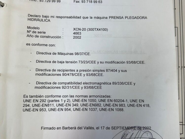 Casanova XCN 20/300 press brake, 4100 mm and 300 tons, with hydraulic crowning, 500 mm throat depth, 25 HP motor and tooling. Year 2002. Good condition.