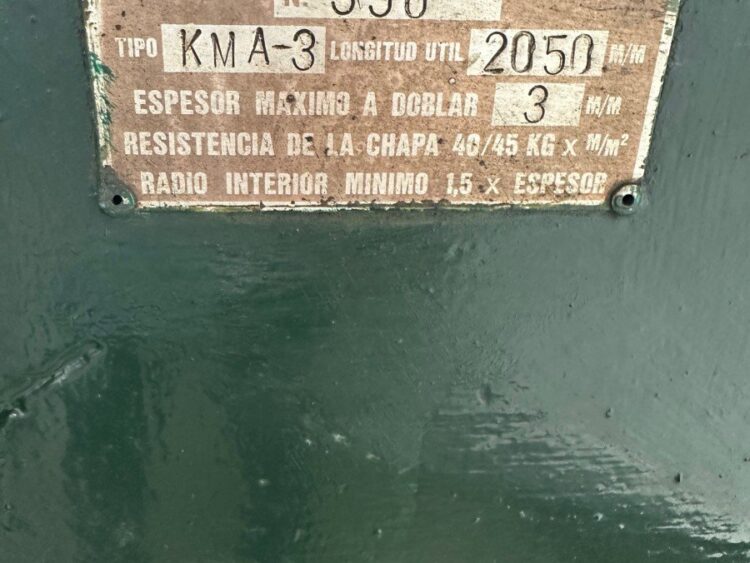 Collado KMA 3 motorized folding machine, 2050 × 3 mm capacity, cast-iron construction and 1750 kg weight. Good condition.