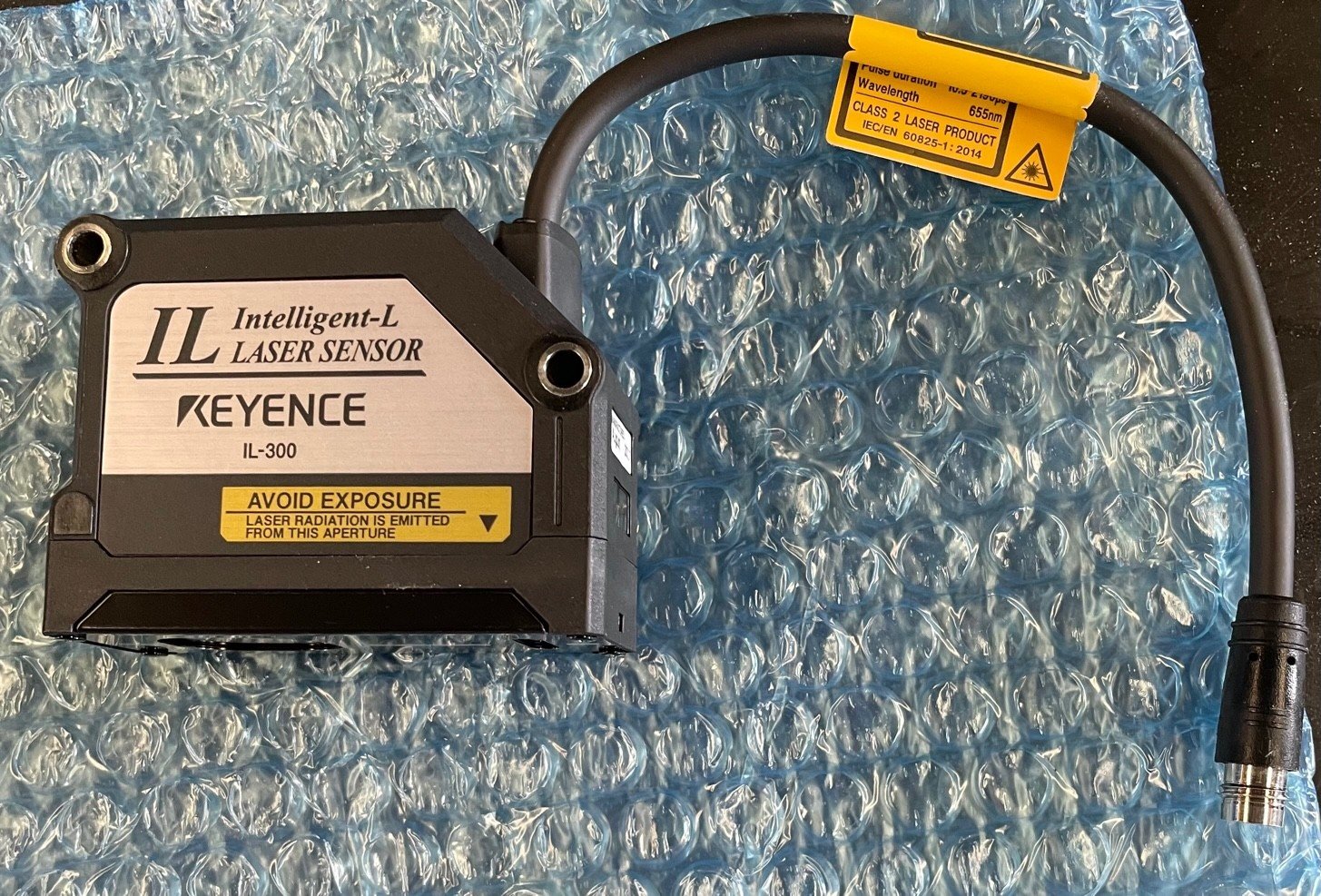 • Sensor láser Keyence, modelo IL-300, diseñado para medición y detección de alta precisión.