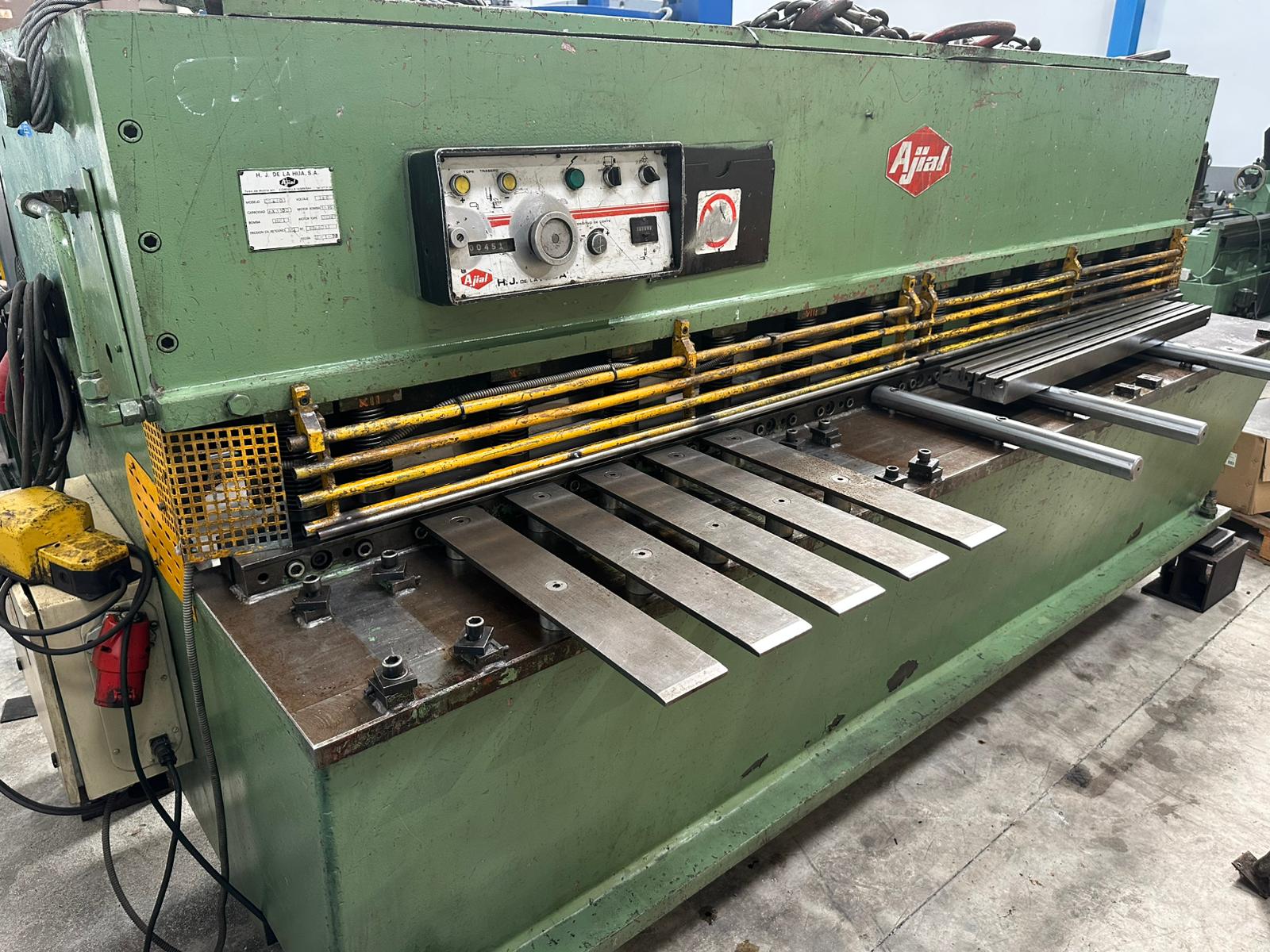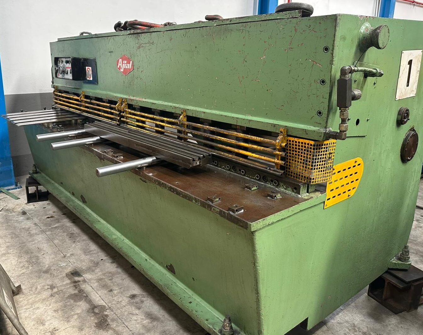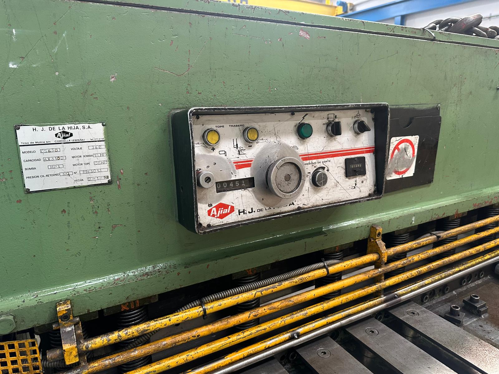 Cizalla hidráulica Ajial CS 630, 3050 × 6 mm, corte pendular, tope motorizado y 15,4 kW. En buen estado.