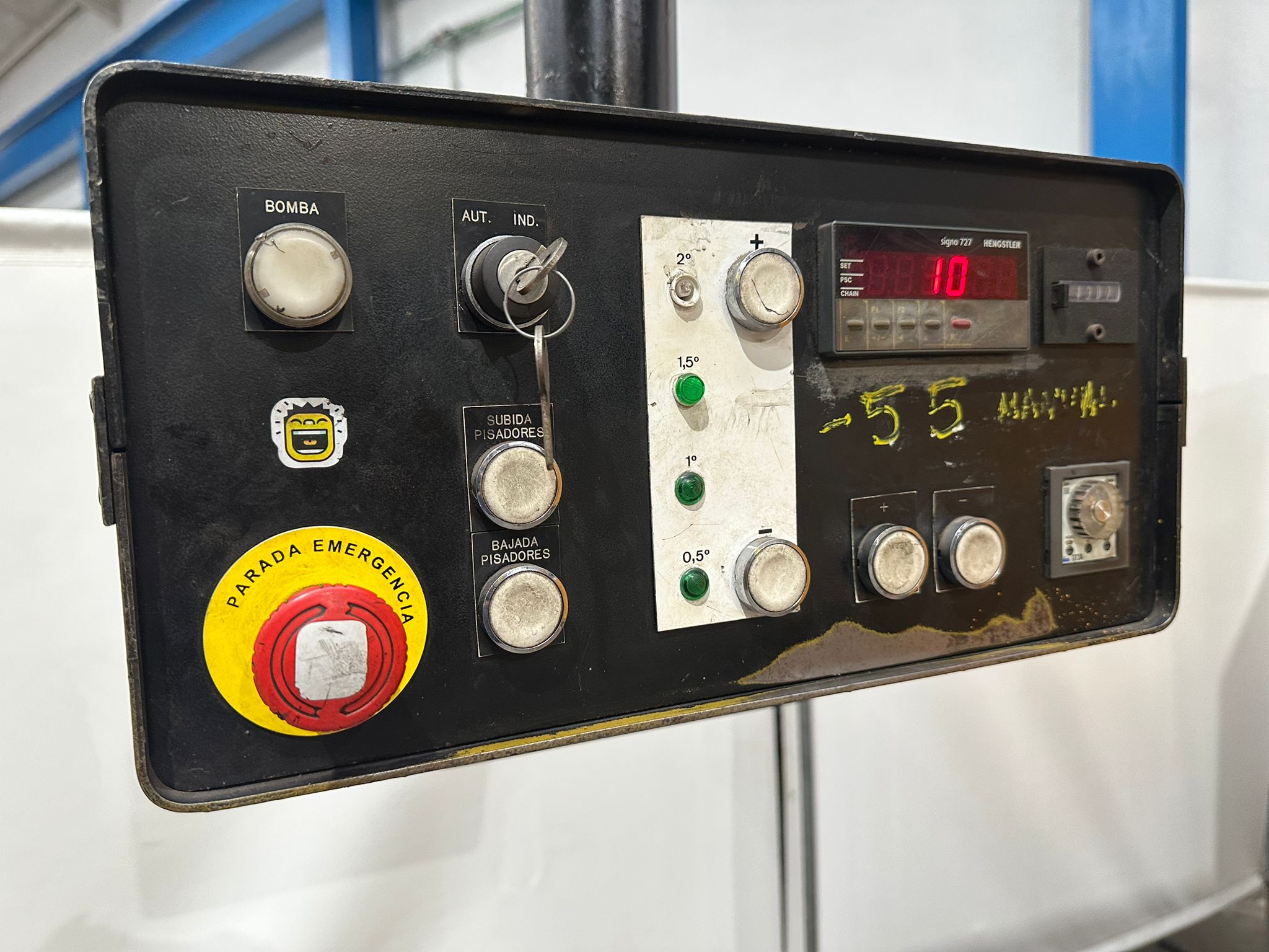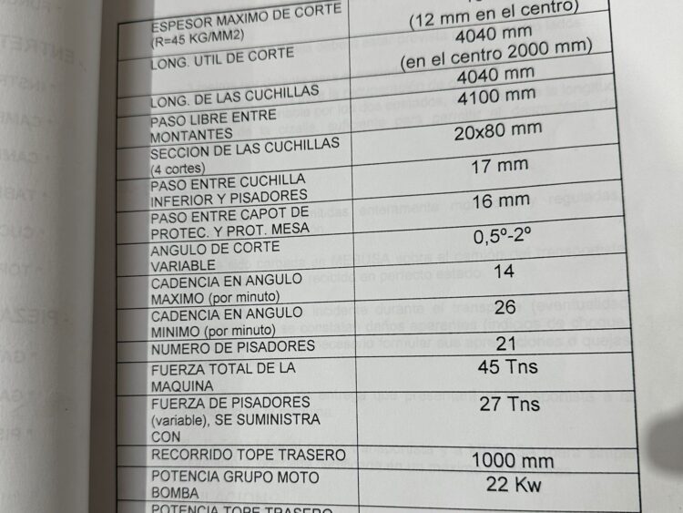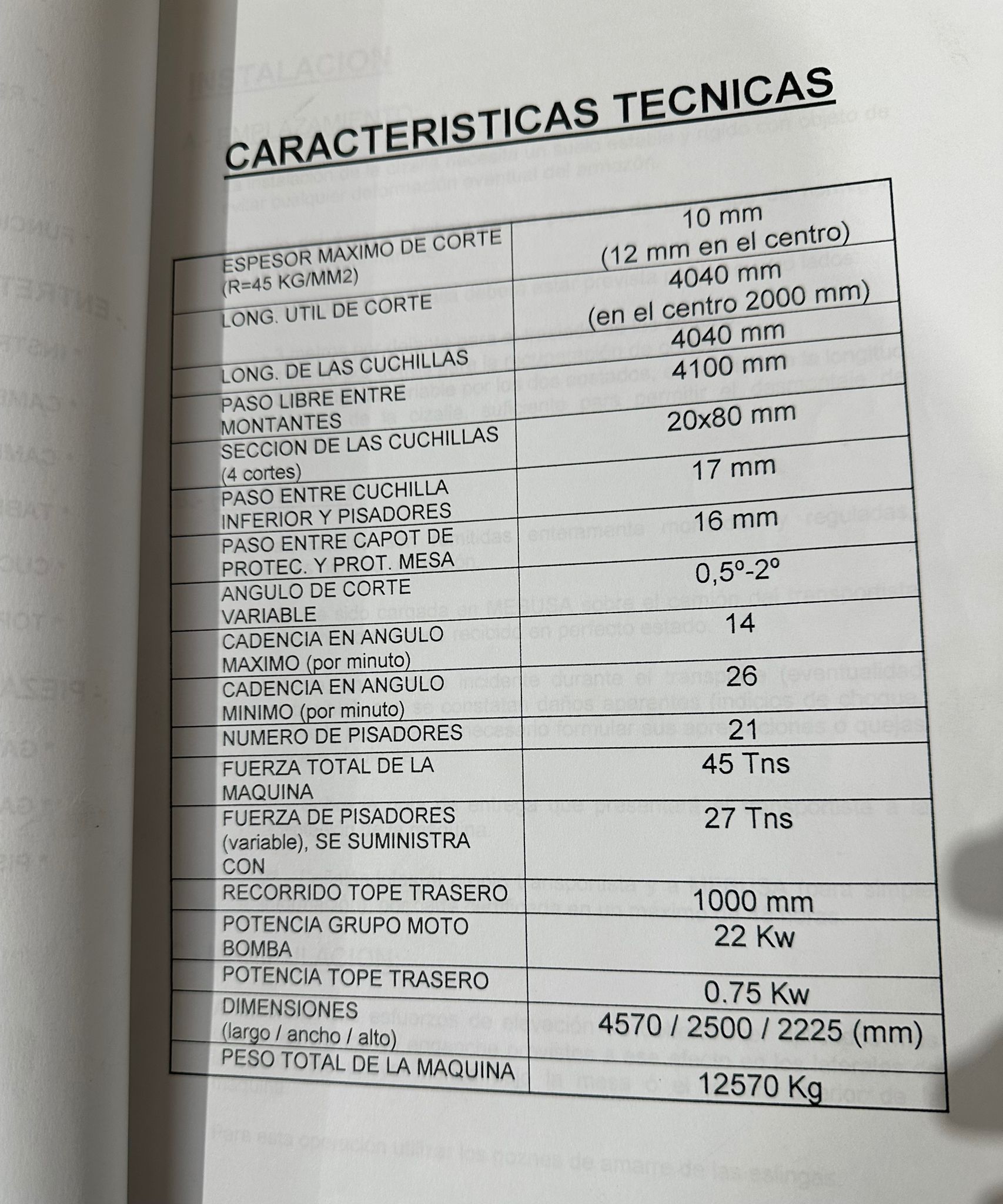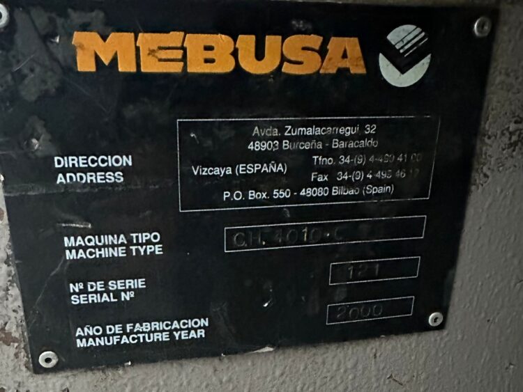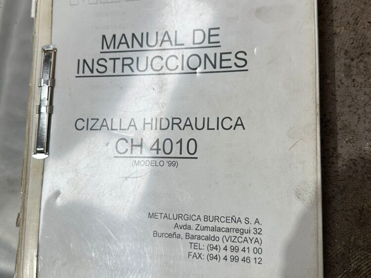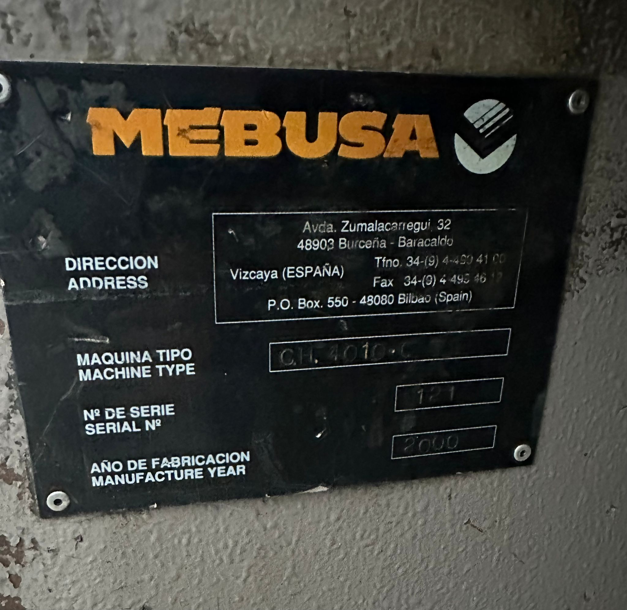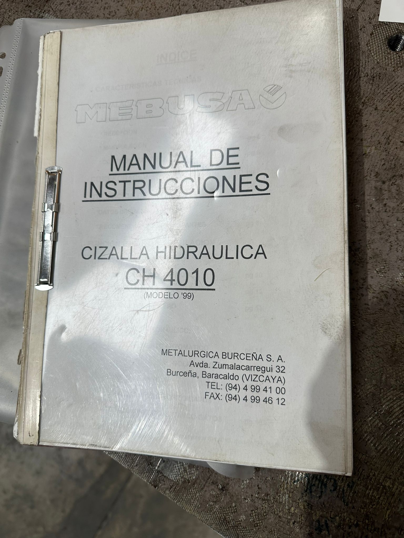 Cizalla hidráulica Mebusa CH 4010, 4050 × 10 mm, tope motorizado 1000 mm, 22 kW, 12.750 kg y CE. Muy buen estado.