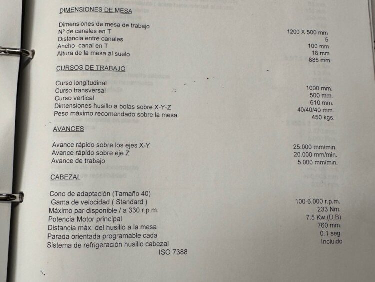 - Distancia máxima de la nariz del husillo a la mesa: 750 mm