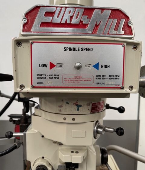 Fresadora Euromill 4AVS40, ISO 40, 75–3800 rpm, DRO 3 ejes y avances automáticos X-Y. Estado seminuevo.