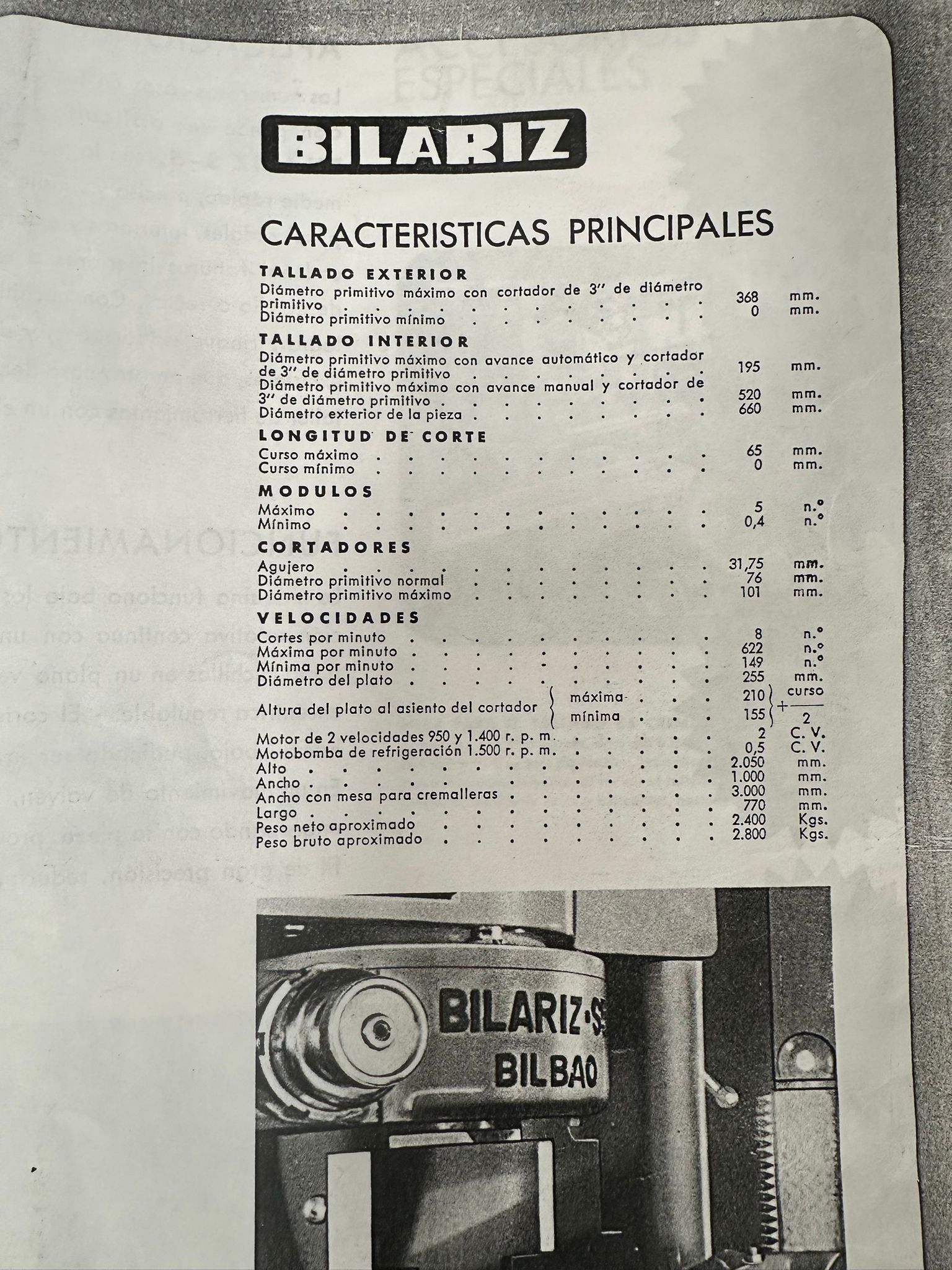 Talladora de Engranajes Bilariz S5 Sistema Brochado/Fellow con Utillajes