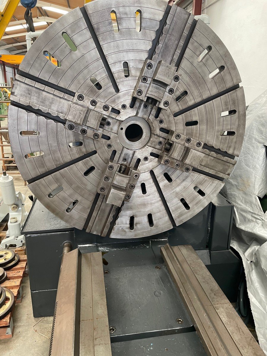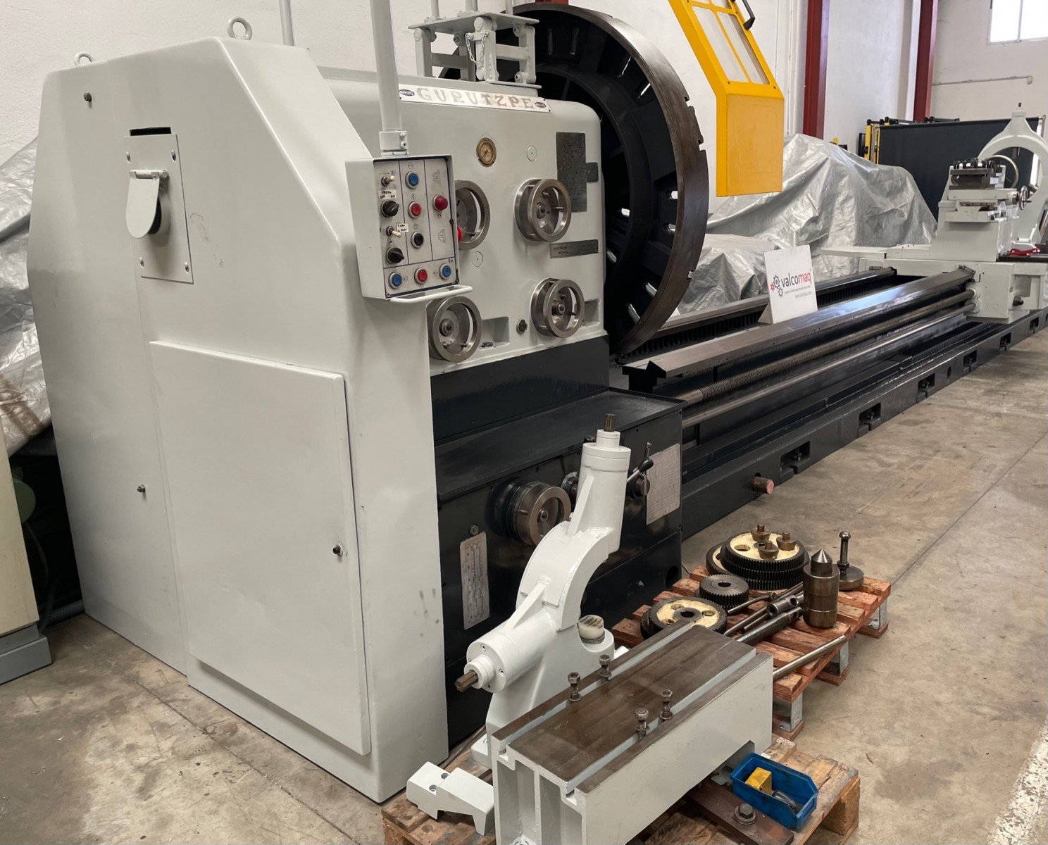 Torno Gurutzpe Super RT-API, 8000 mm entre puntos, husillo Ø360 mm, platos Ø800 y Ø1000 mm, roscador automático, lunetas, visualizador FAGOR, seminuevo.