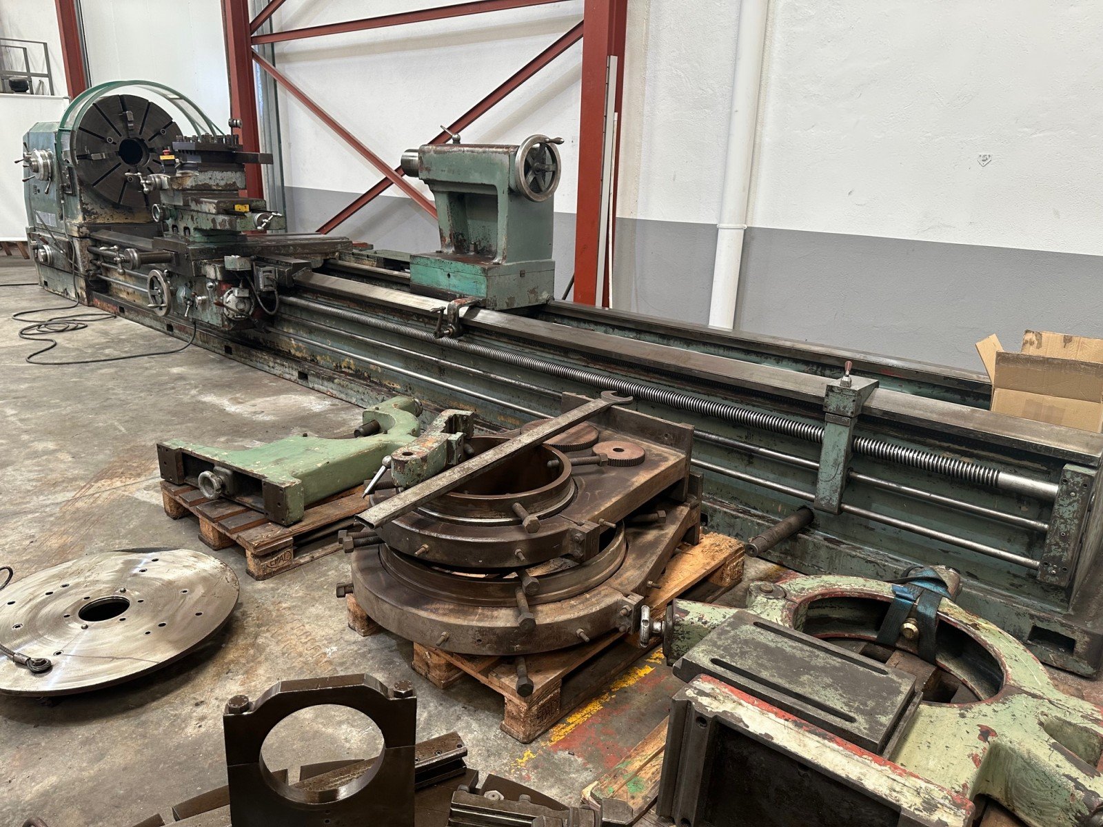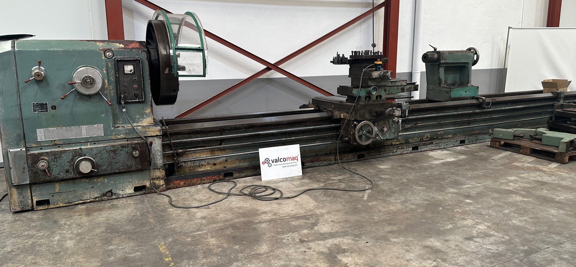 Torno Tacchi FTC 1500 x 7000 mm, 8 velocidades, con lunetas y platos de 1000 y 1200 mm. En buen estado.