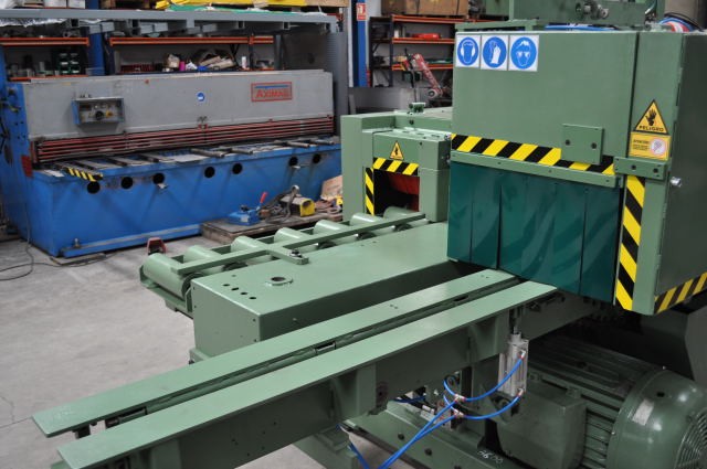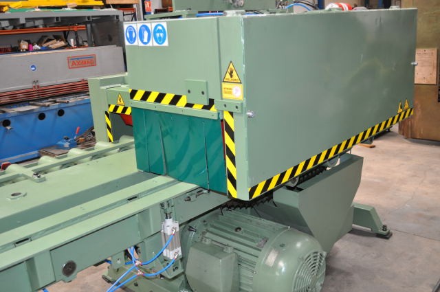 Alimentador Johuse inferior para sierra de cinta. Ideal para avance continuo de piezas. En buen estado.